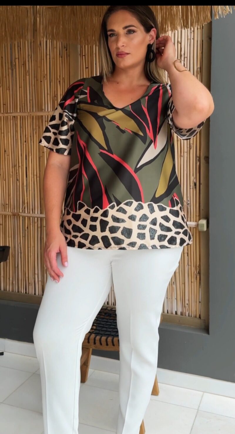 18.00 €Μπλούζα σατέν εμπριμέ V με ανοίγματα στα πλαϊνά κωδ. S1047