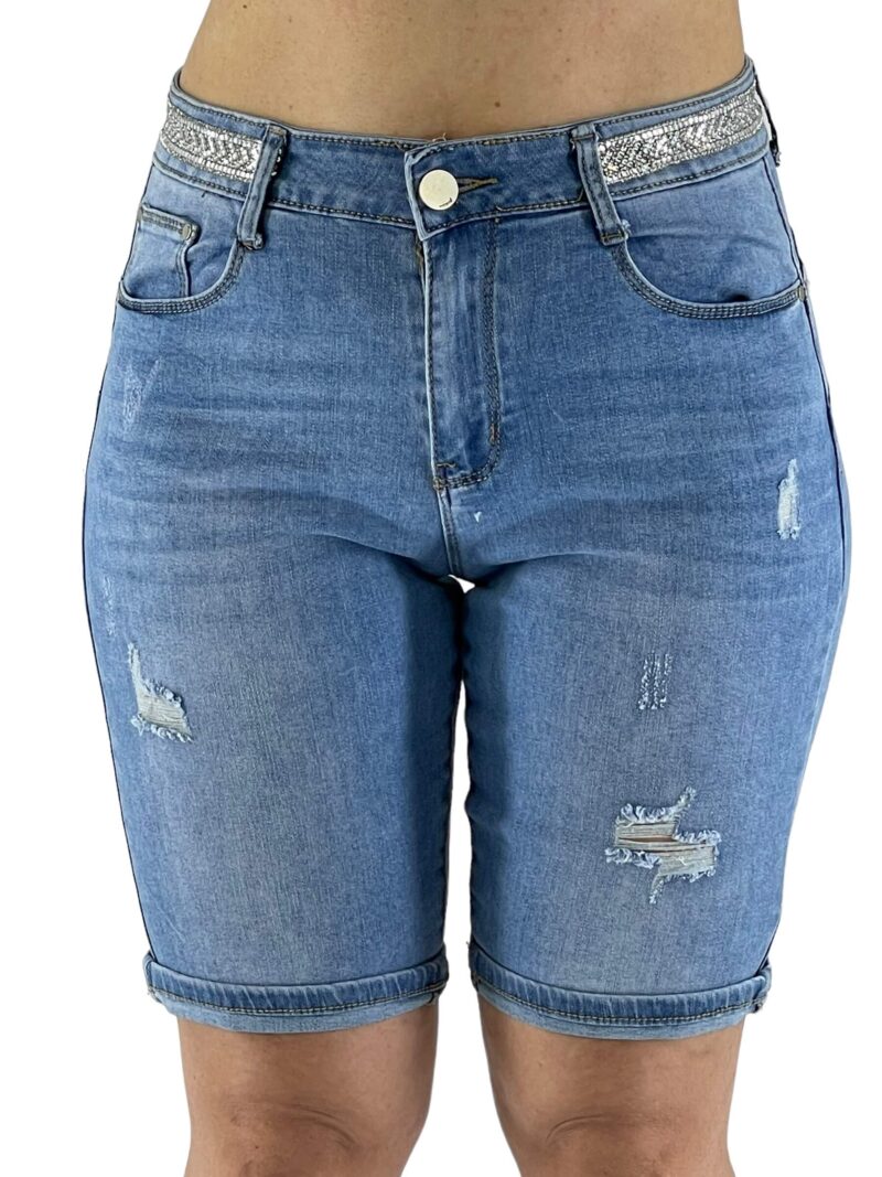 Βερμούδα τζίν ξεβαμένη με στρας στην μεση κωδ.A1066