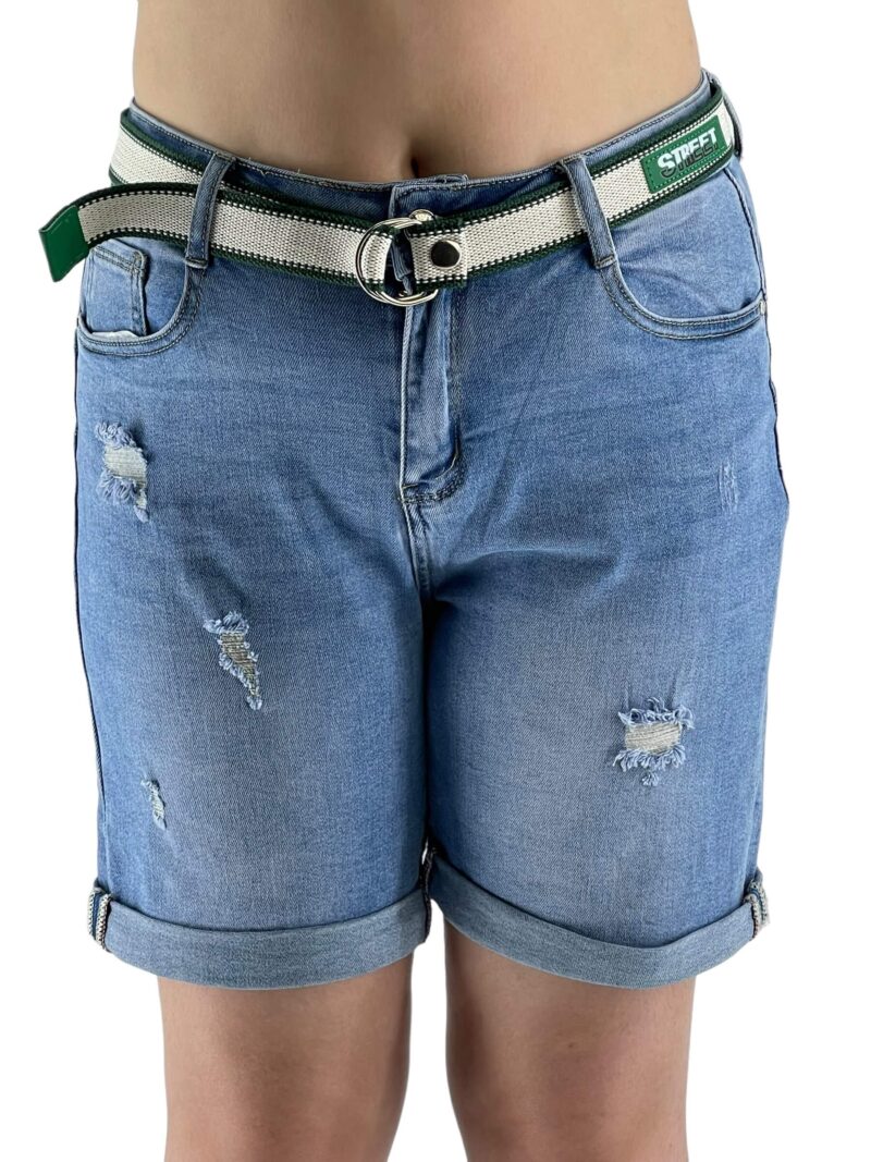 Βερμούδα τζιν με ξέφτια και ζώνη κωδ.MG3893