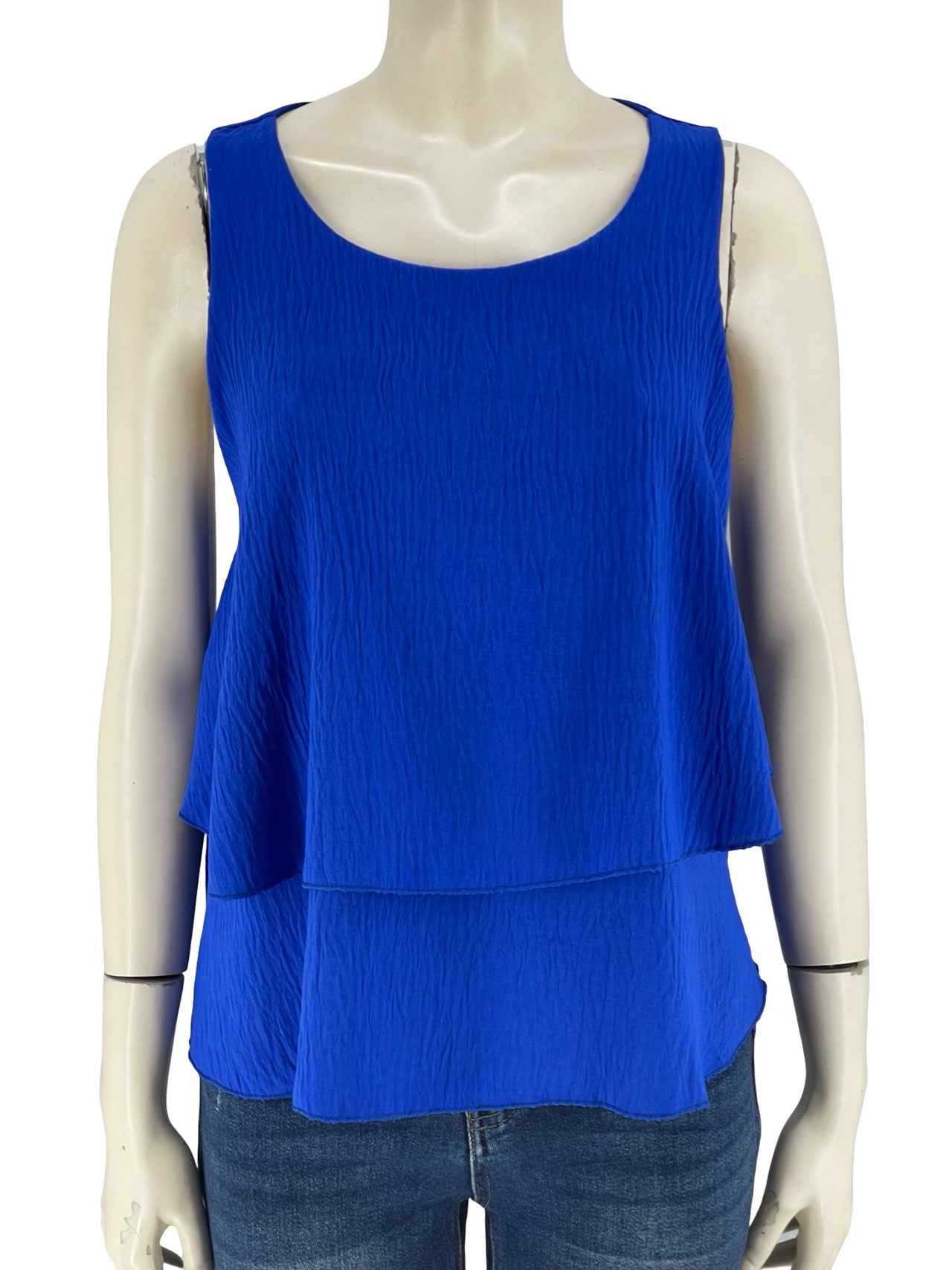 Γυναικεία μπλούζα τσαλακωτό ύφασμα, αμάνικη, μονόχρωμη με βολάν. Λαιμόκοψη με κουμπάκι στο πίσω μέρος. Καλύπτει από NoM έως NoXL.