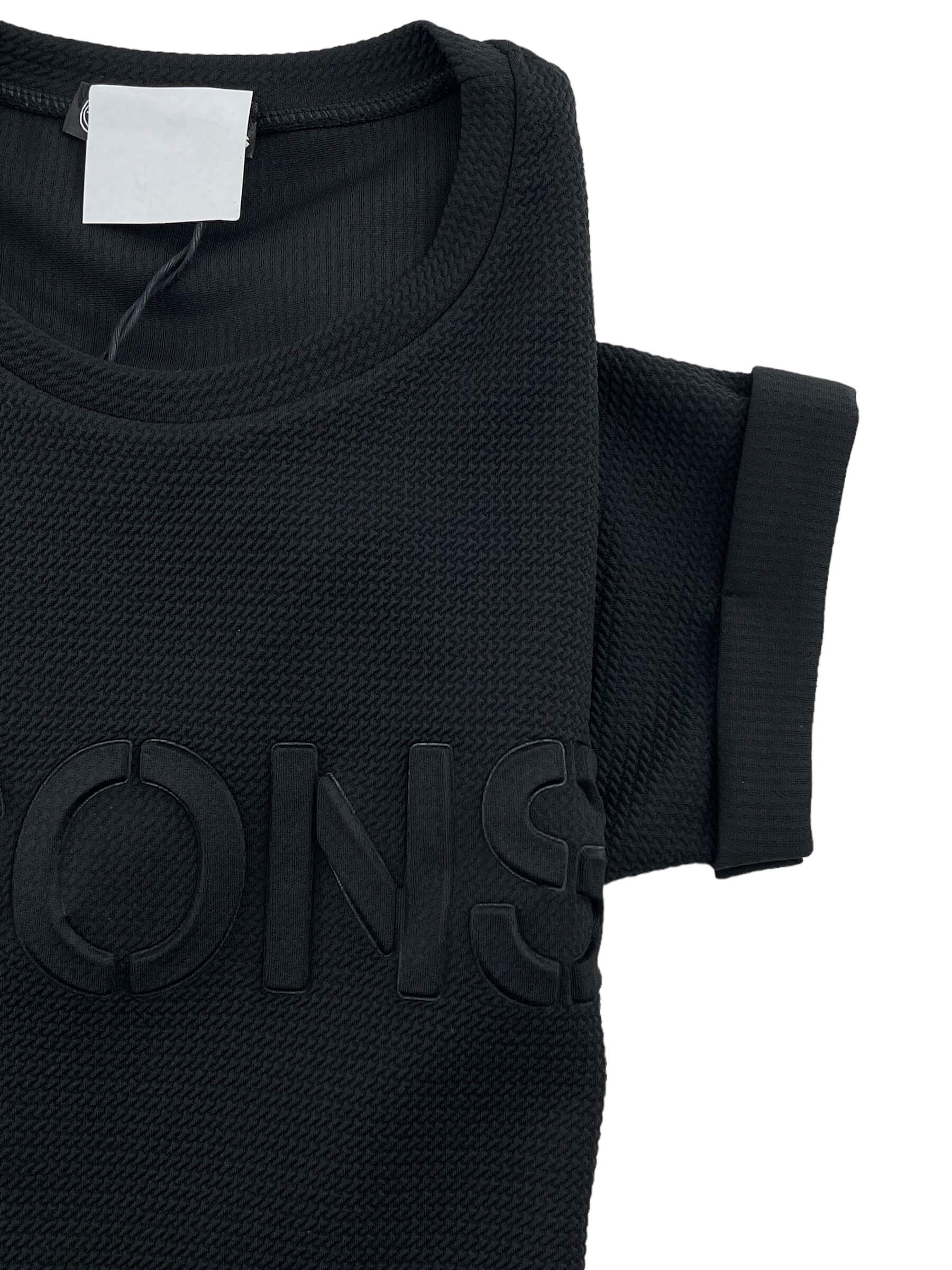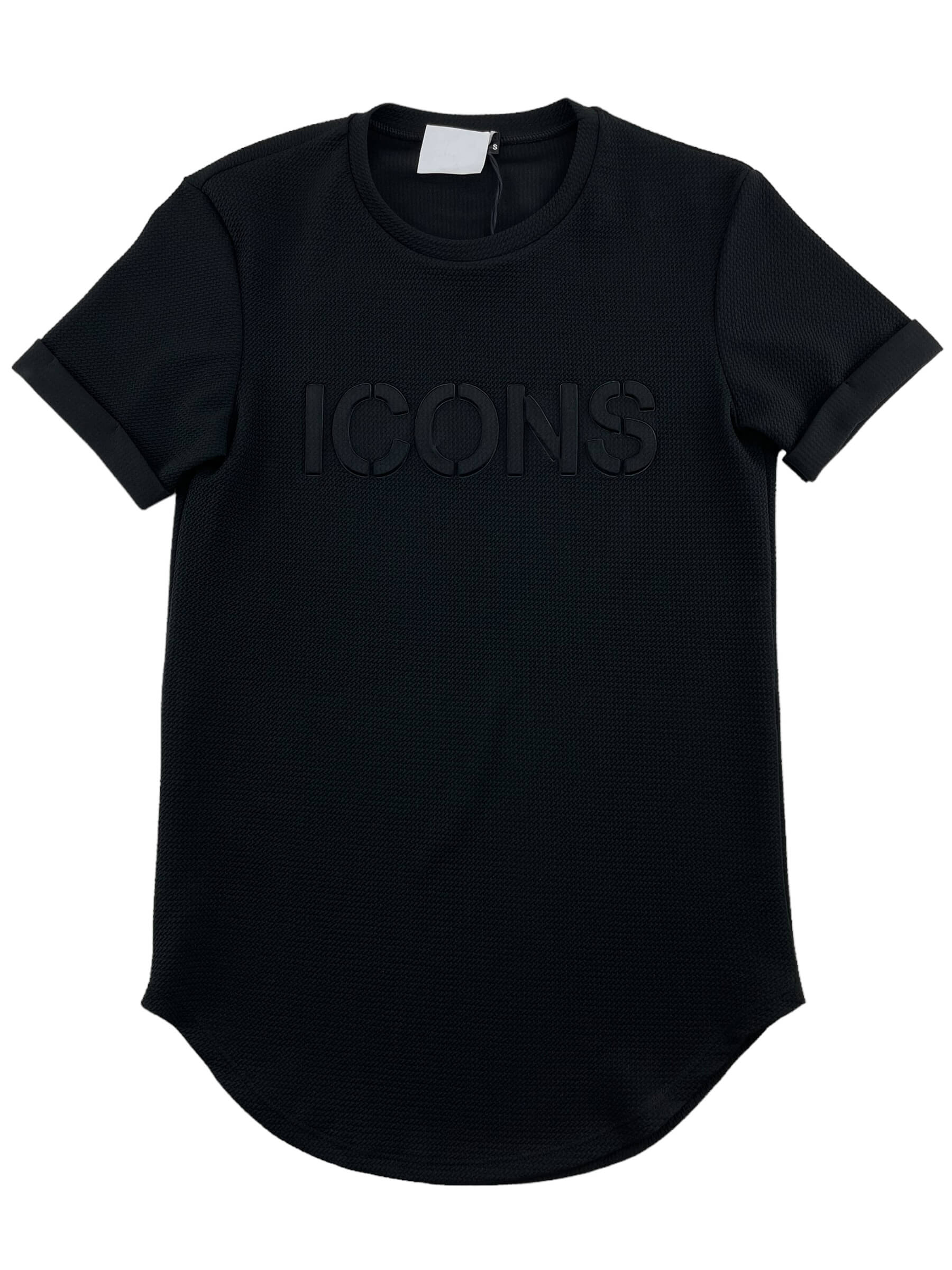 Μπλούζα ανδρική ελαστική λαιμόκοψη με ανάγλυφα γράμματα στο εμπρός μέρος.Κοντό μανίκι με ρεβέρ.Στρογγυλό τελείωμα.Στενή γραμμή.