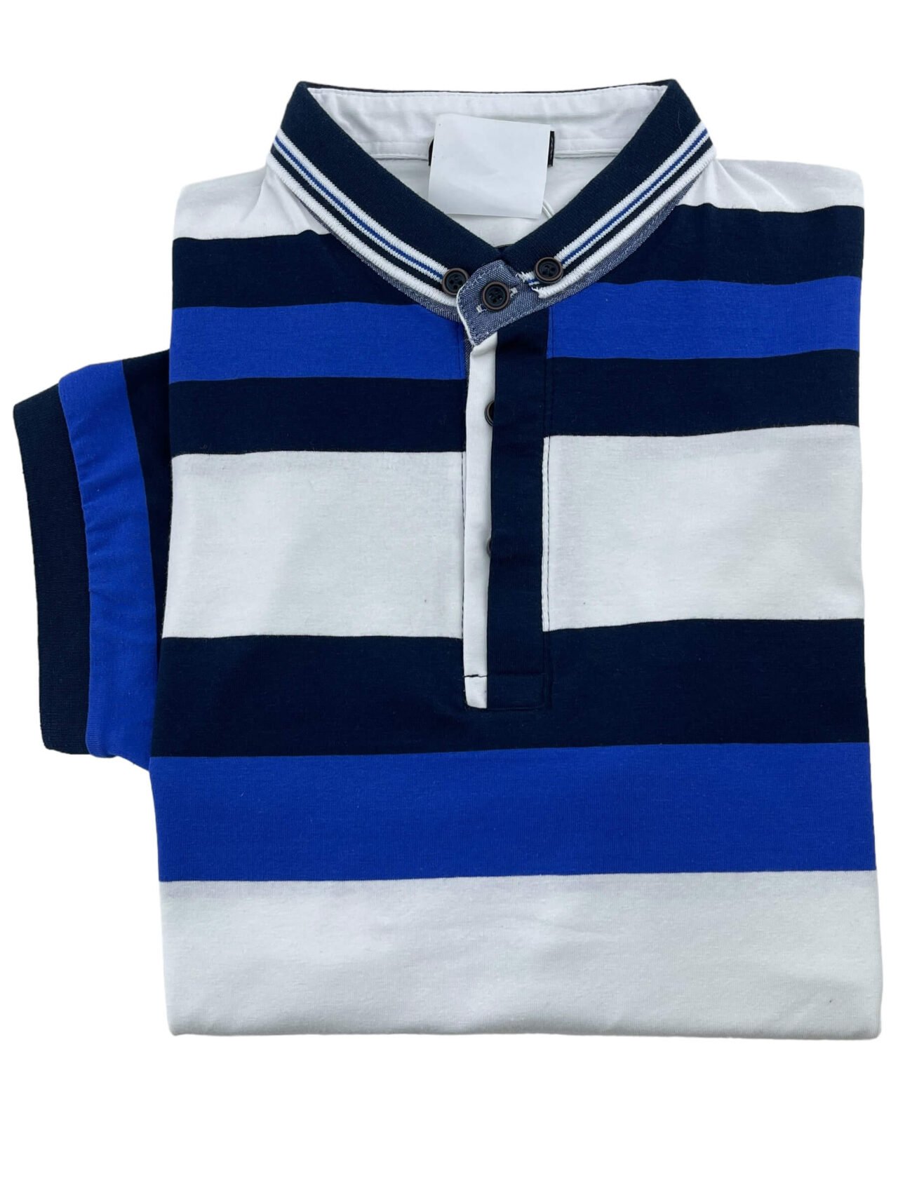 Μπλούζα ανδρική βαμβακερή,ελαστική ριγέ με mao γιακά και κρυφά κουμπάκια.Ίσιο τελείωμα.Στενή γραμμή.