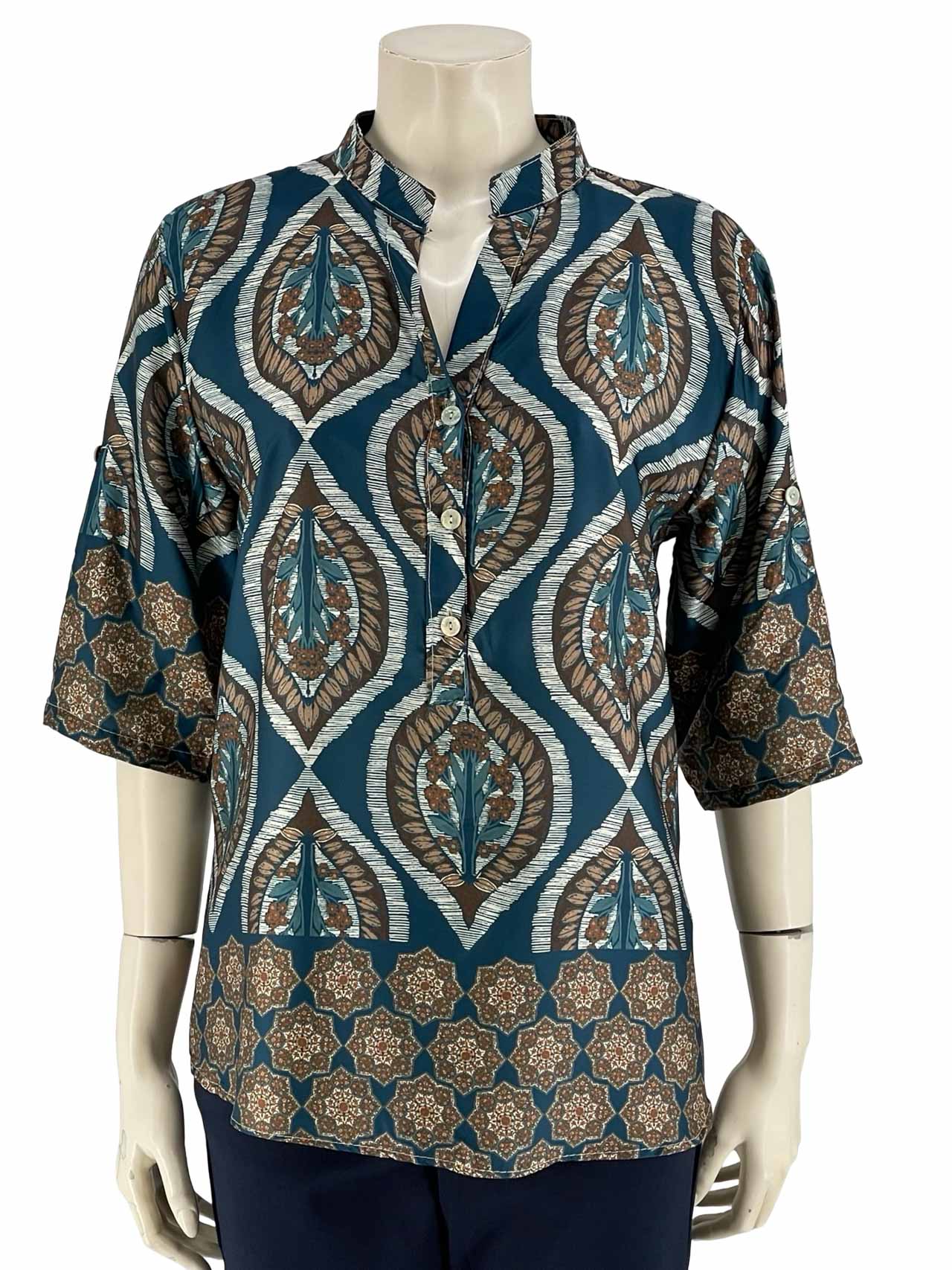 Μπλούζα εμπριμέ σατέν με μάο γιακά κωδ. 59270