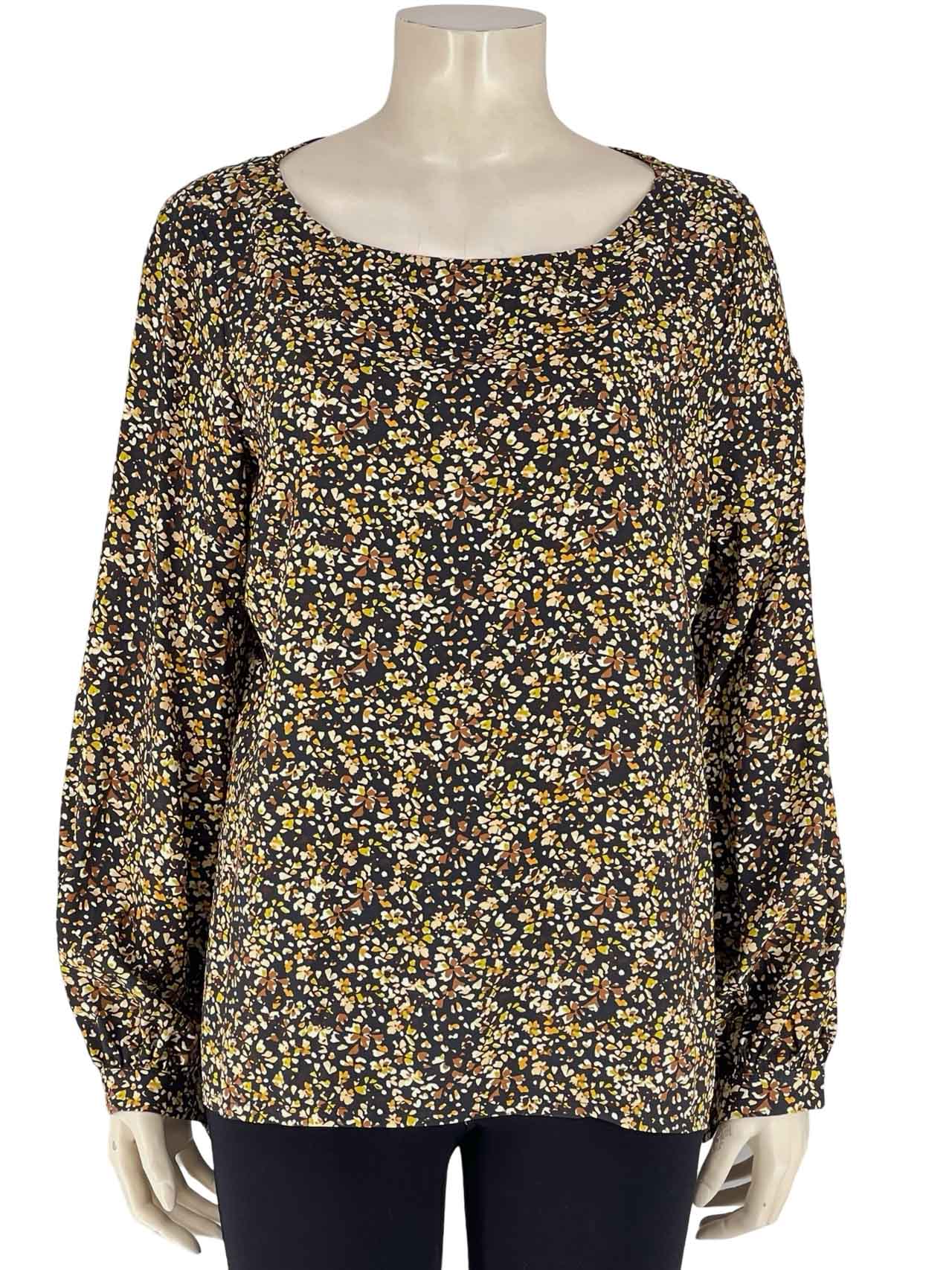 Μπλούζα γυναικεία εμπριμέ. Ίσια γραμμή με μακρύ μανίκι και τελείωμα μανσέτα.