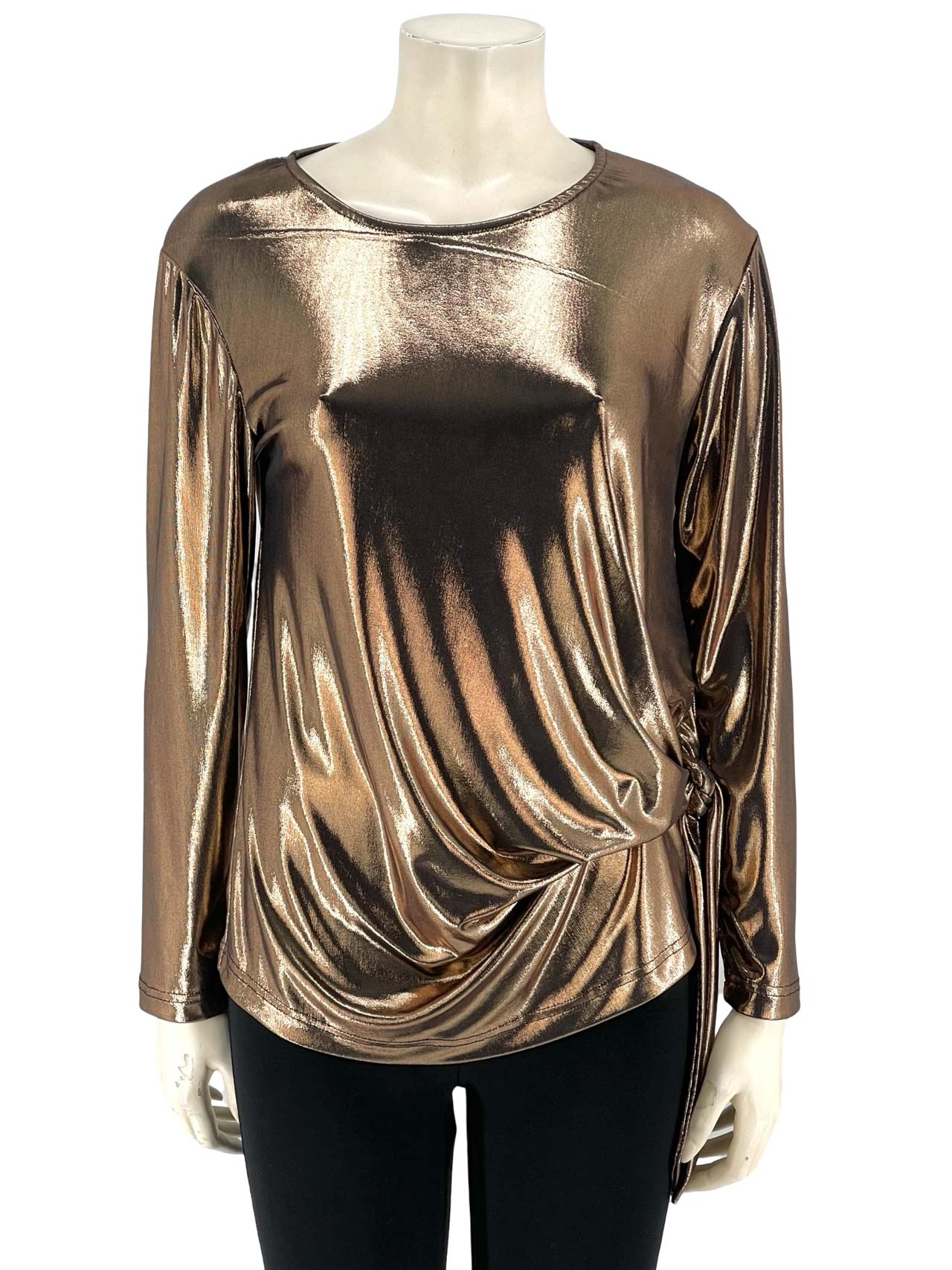 Μπλούζα γυναικεία μεταλιζέ, λαιμόκοψη με δέσιμο στο πλάι. Μακρύ μανίκι ίσιο τελείωμα. Κανονική γραμμή.