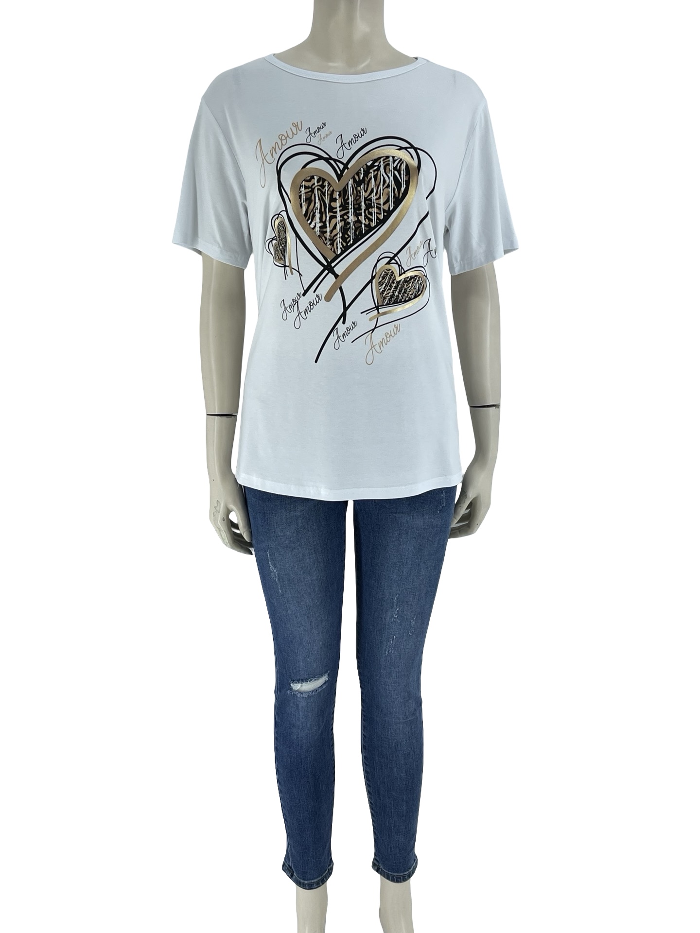 Μπλούζα γυναικεία βαμβακολύκρα λαιμόκοψη με στάμπα στο εμπρός μέρος. Κοντό μανίκι. Ίσιο τελείωμα. Καλύπτει από NoM έως NoXL.