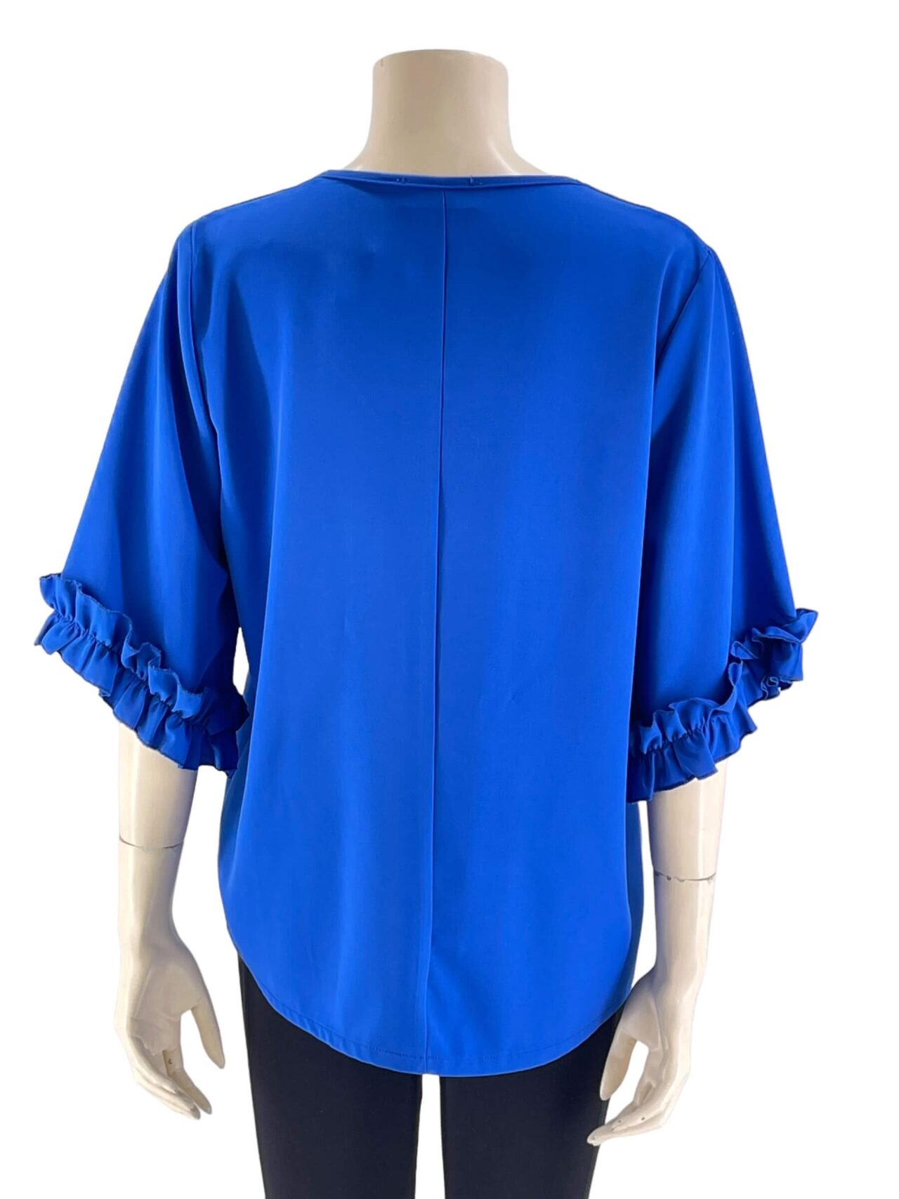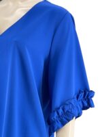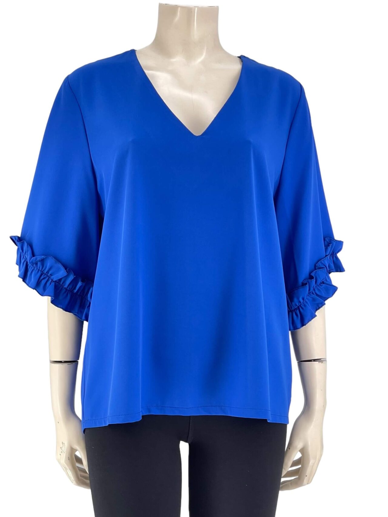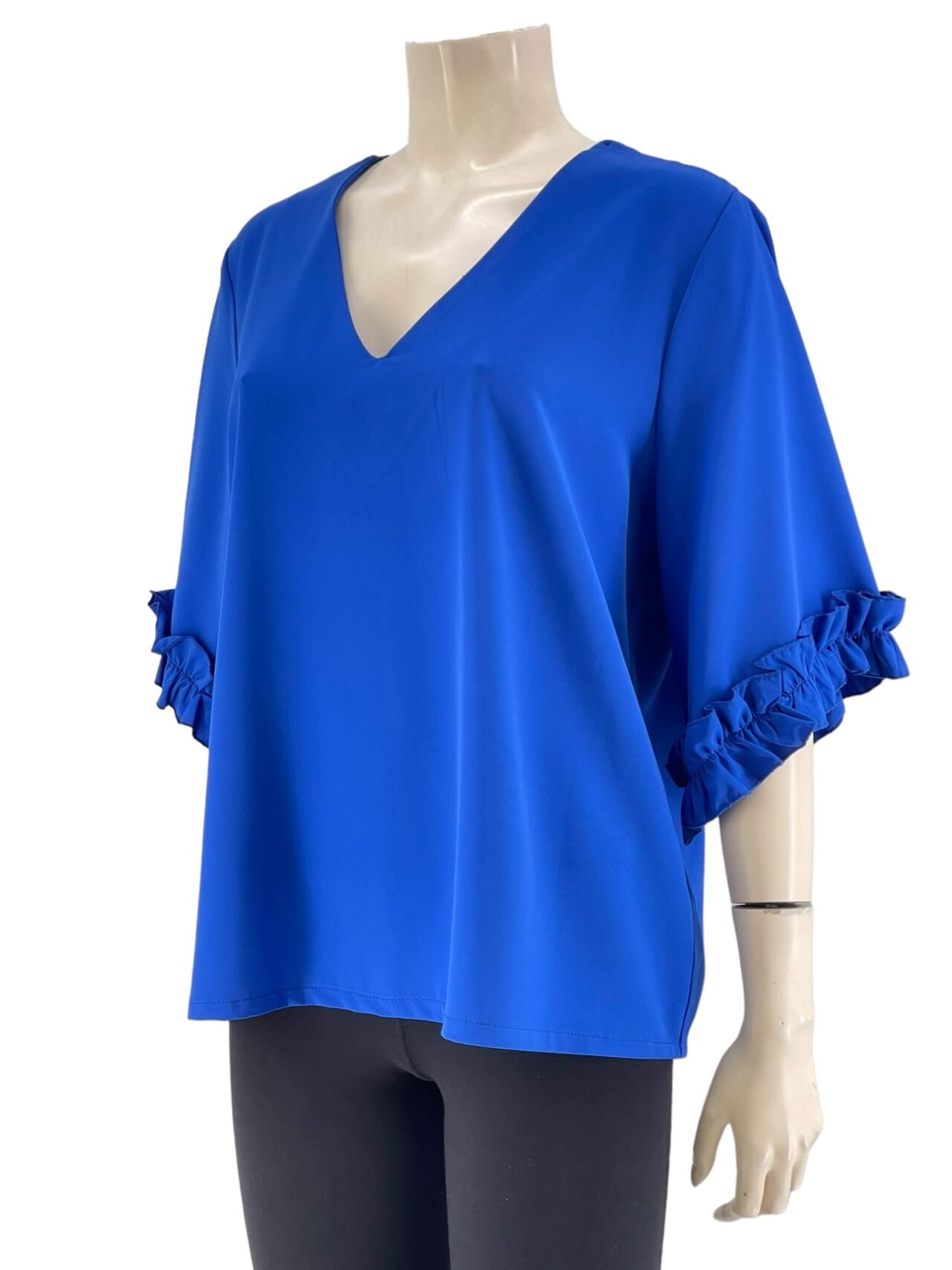 Μπλούζα μονόχρωμη V σε ίσια γραμμή.Ημίκοντο μανίκι με τελείωμα βολάν.Μεγάλο μέγεθος.
