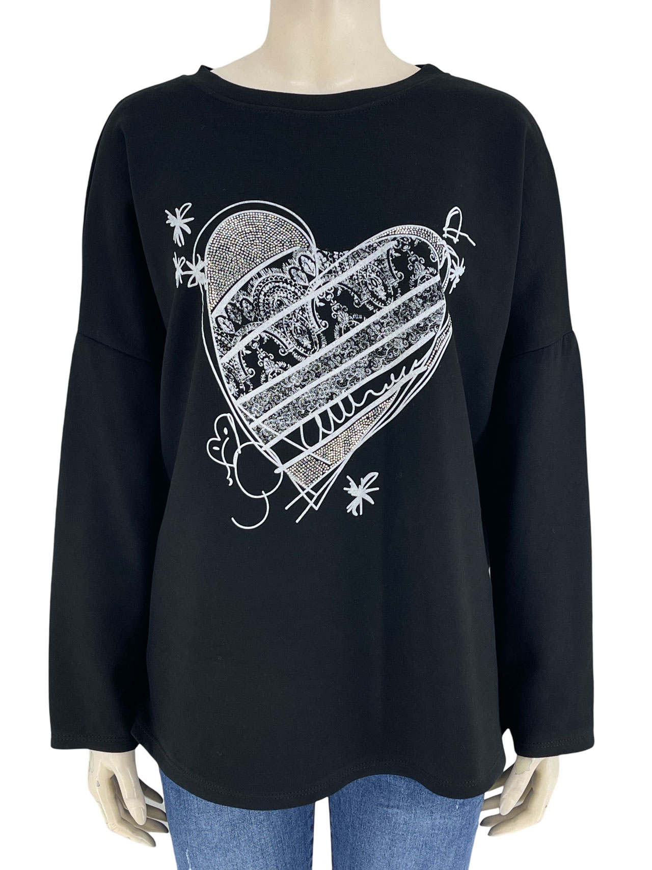 Μπλούζα γυναικεία oversized λαιμόκοψη, ελαστική με στάμπα και στρασάκια στο εμπρός μέρος. Ίσιο τελείωμα. Καλύπτει από ΝοL έως No2XL.