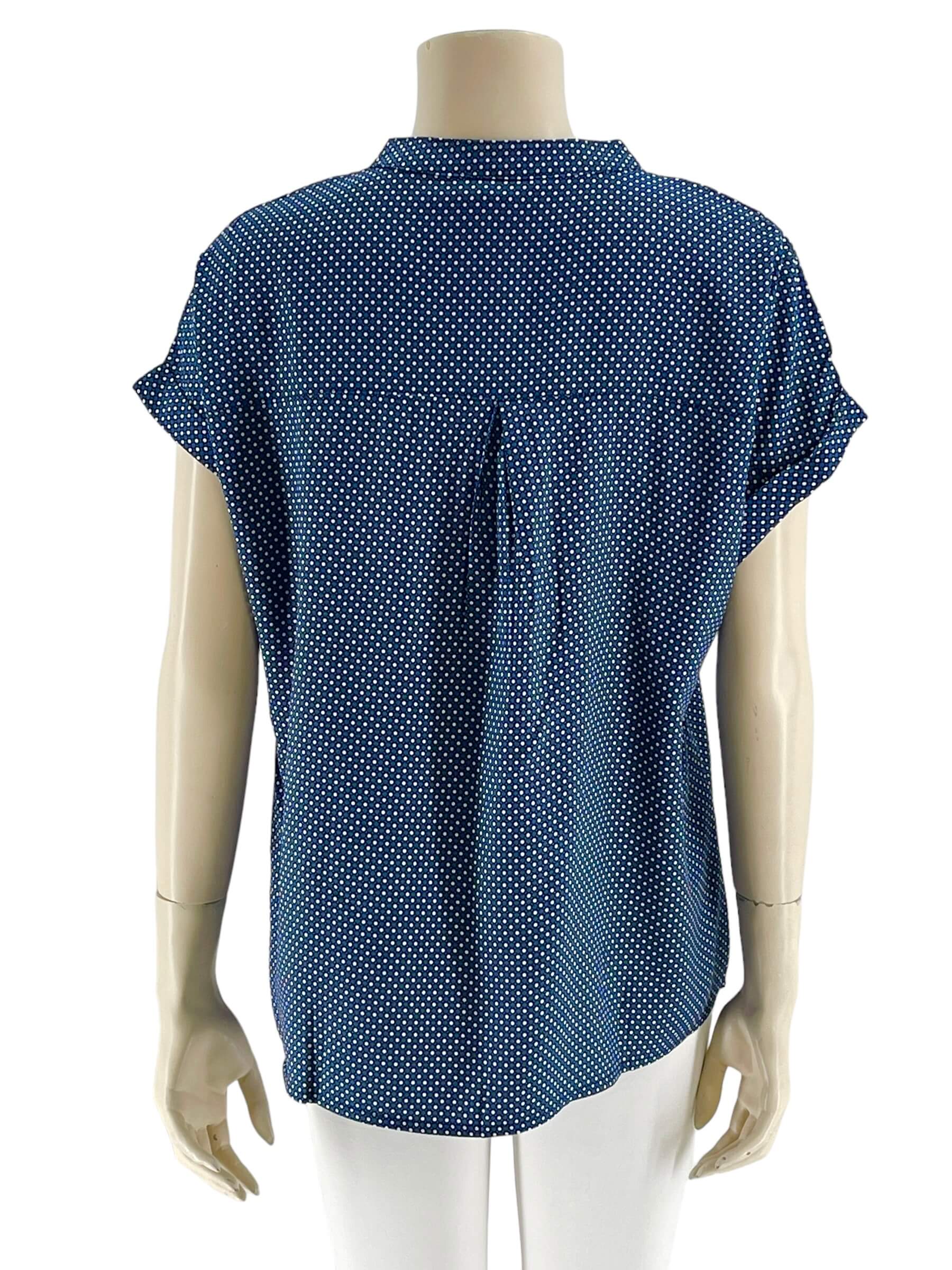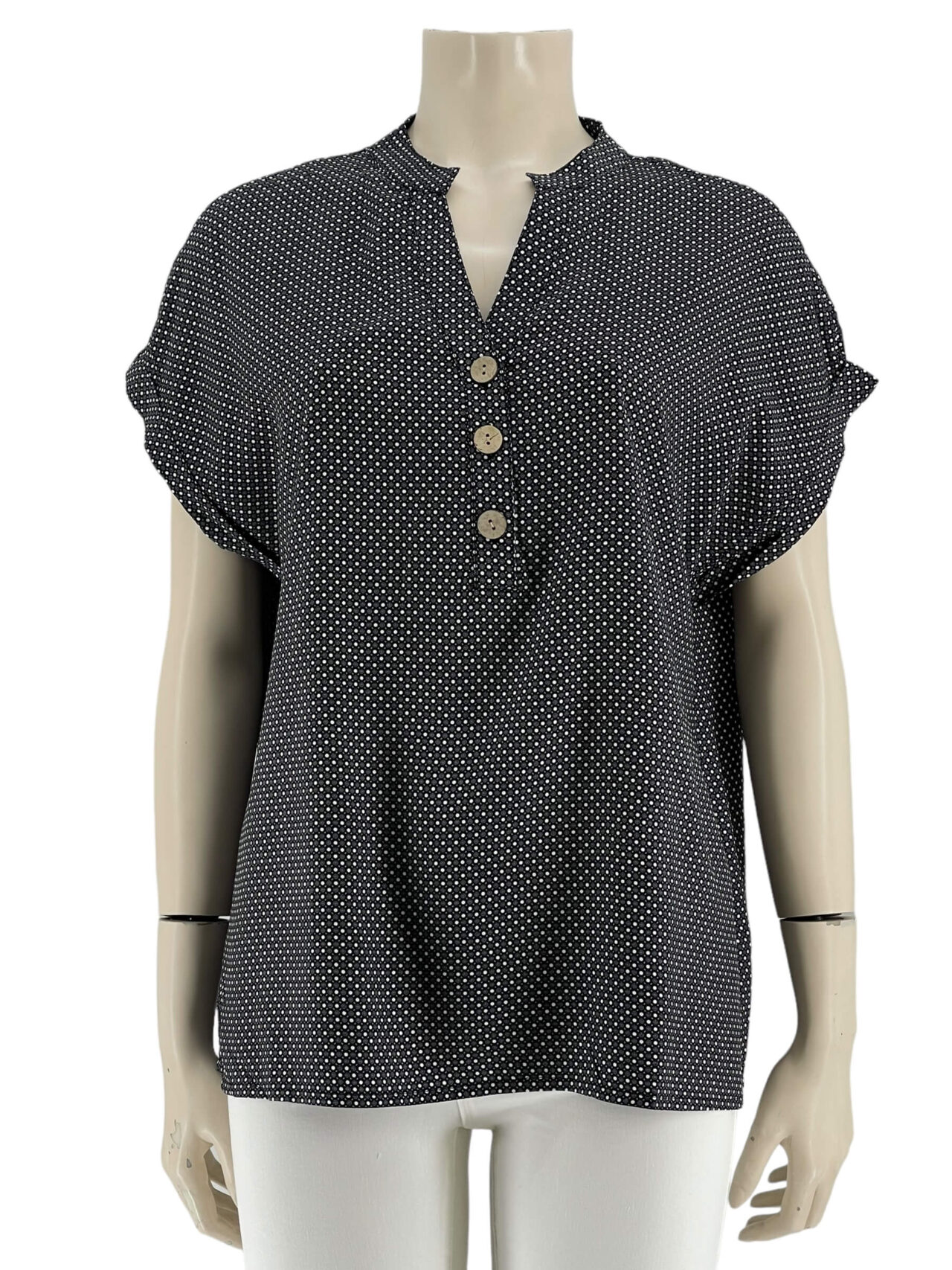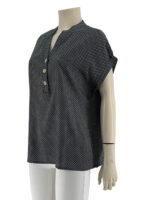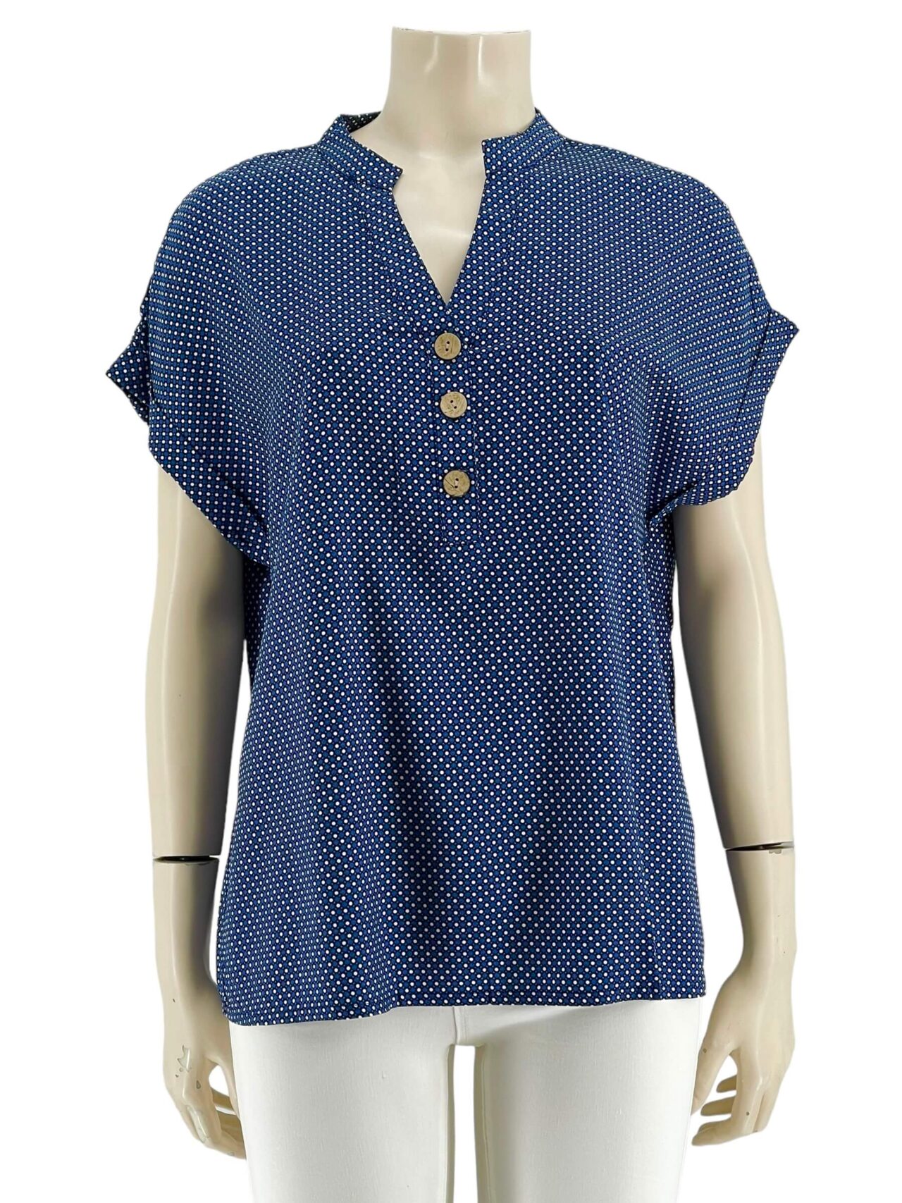Μπλούζα γυναικεία με mao γιακά και κουμπάκια στο V.Δροσερό και άνετο ύφασμα με ψιλό πουά.Ίσιο τελείωμα.Κανονική γραμμή.