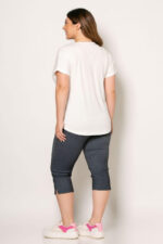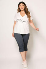 Μπλούζα γυναικεία βισκόζ ελαστική V μονόχρωμη με τύπωμα στο εμπρός μέρος.Ίσιο τελείωμα.Κοντό μανίκι.Μεγάλο μέγεθος.