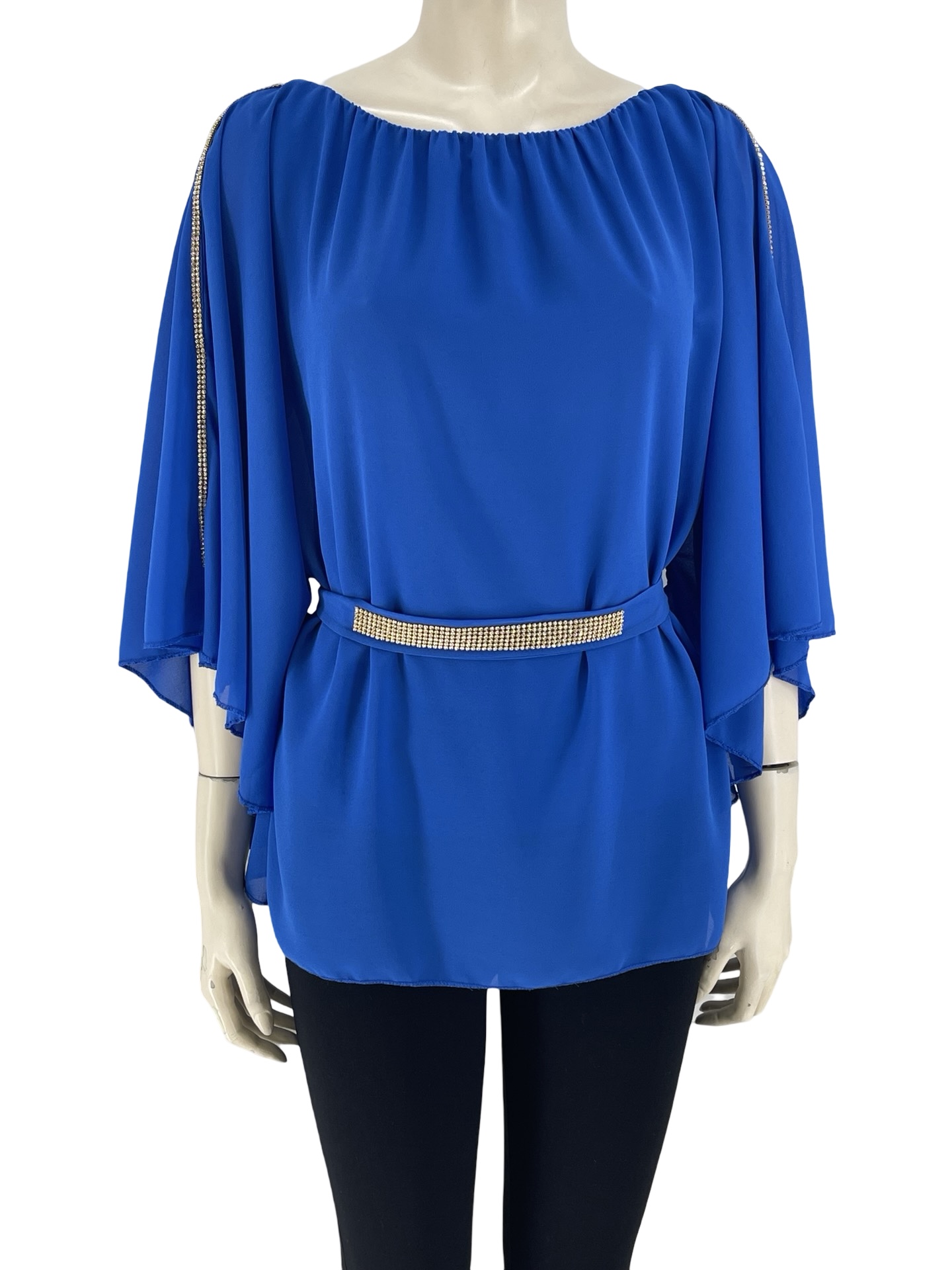 Μπλούζα ζορζέτα με διακοσμητικά στρας και ζώνη κωδ. 591000
