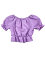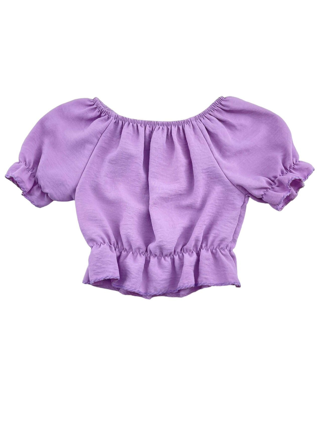 Μπλουζάκι κορίτσι crop μονόχρωμο σε τσαλακωτό ύφασμα.Σούρες στον λαιμό,στα μανίκια και στο τελειωμά του.