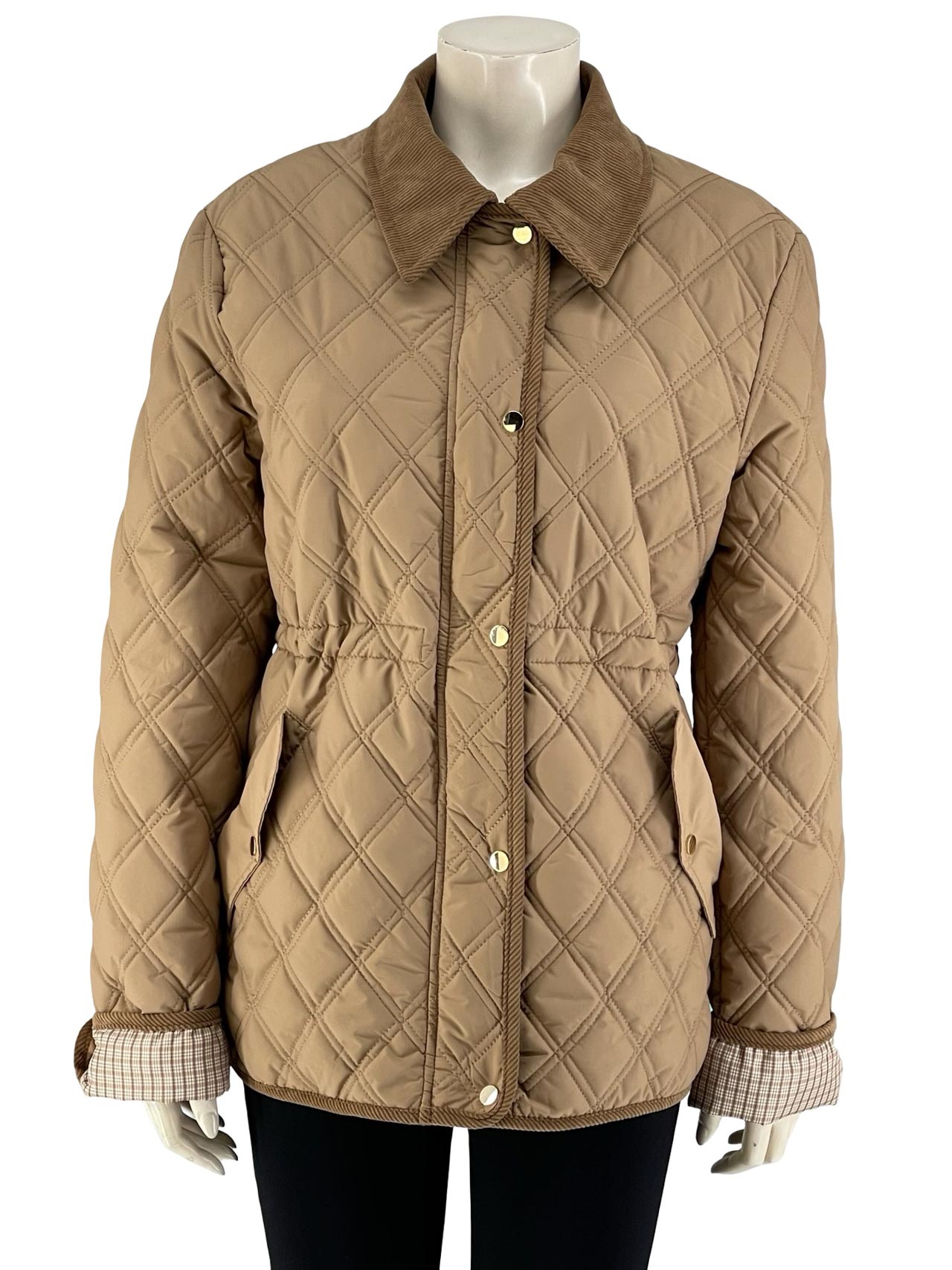 Μπουφάν γυναικείο καπιτονέ με ελαφριά επένδυση και πέτο γιακά κοτλέ.