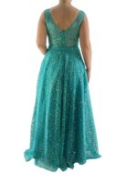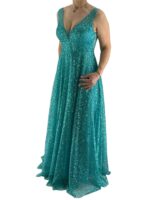 Φόρεμα γυναικείο maxi αμπιγιέ V αμάνικο με ενίσχυση στο στήθος.Φοδραρισμένο στο εσωτερικό του.Κλείσιμο με φερμουάρ στην πλάτη.Στενή γραμμή.