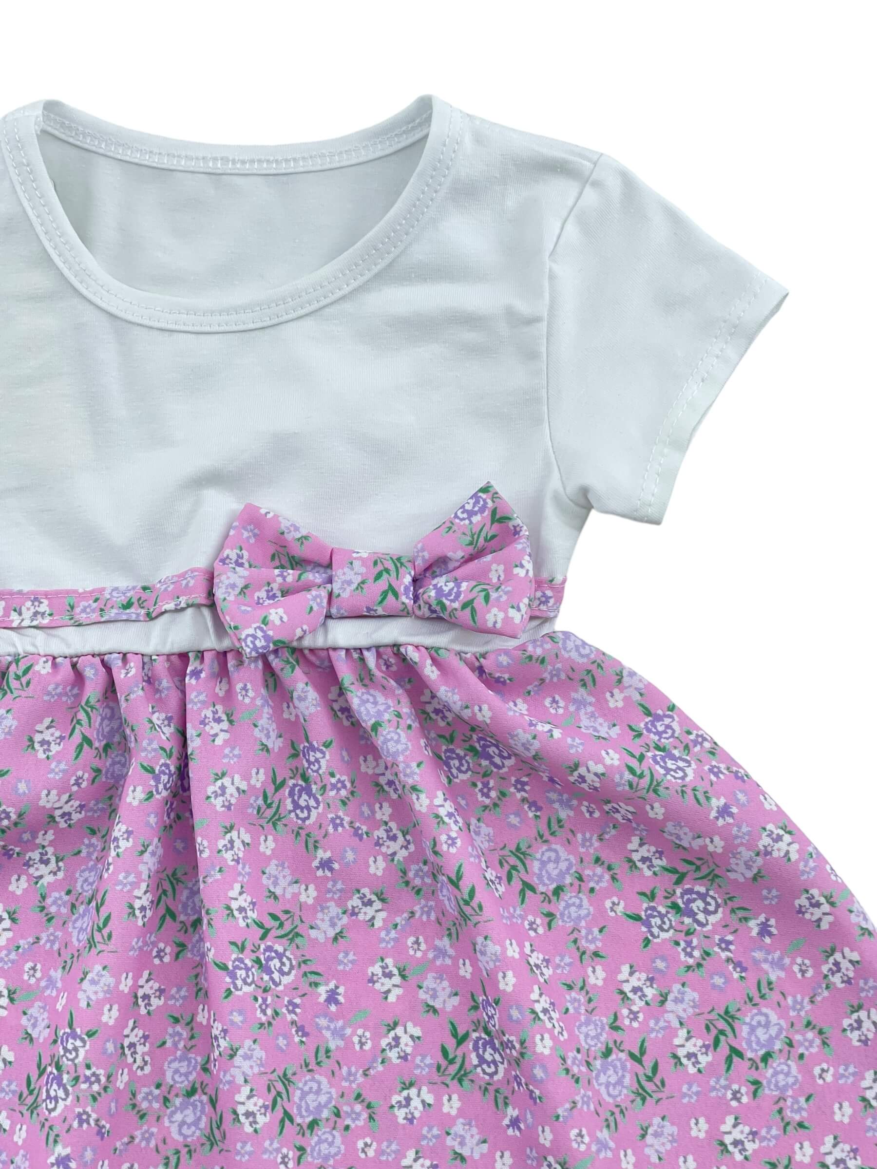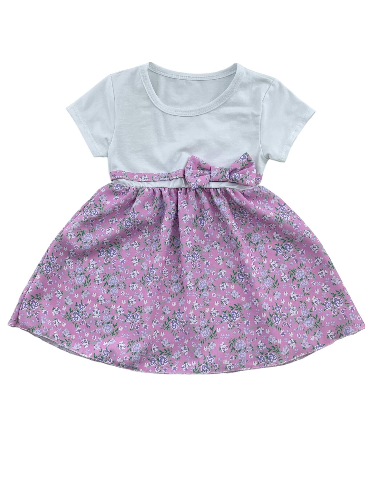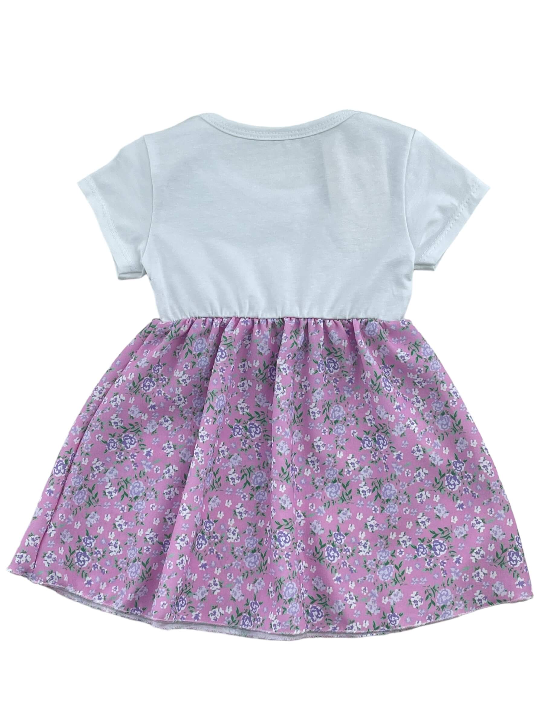 Φόρεμα μπεμπέ βαμβακερό λαιμόκοψη μονόχρωμο μπούστο και εμπριμέ το κάτω μέρος.
