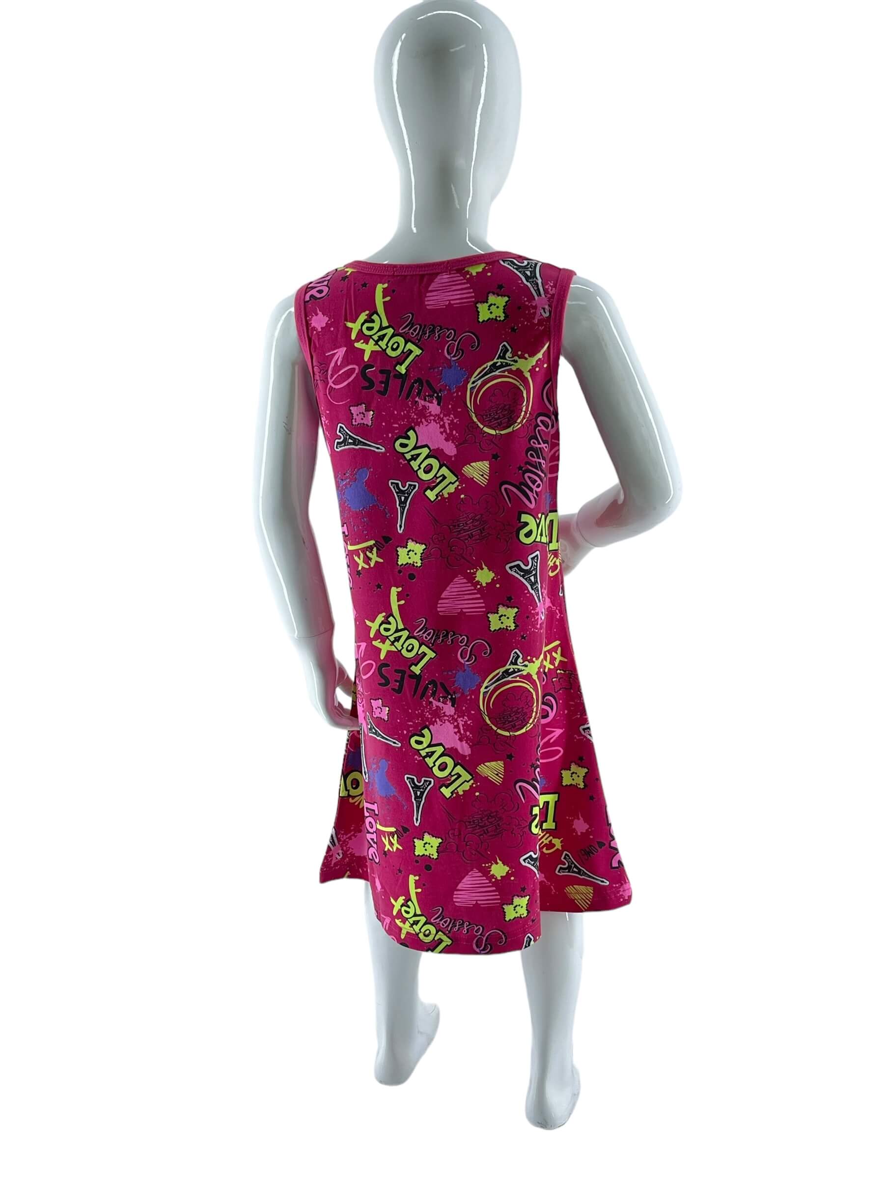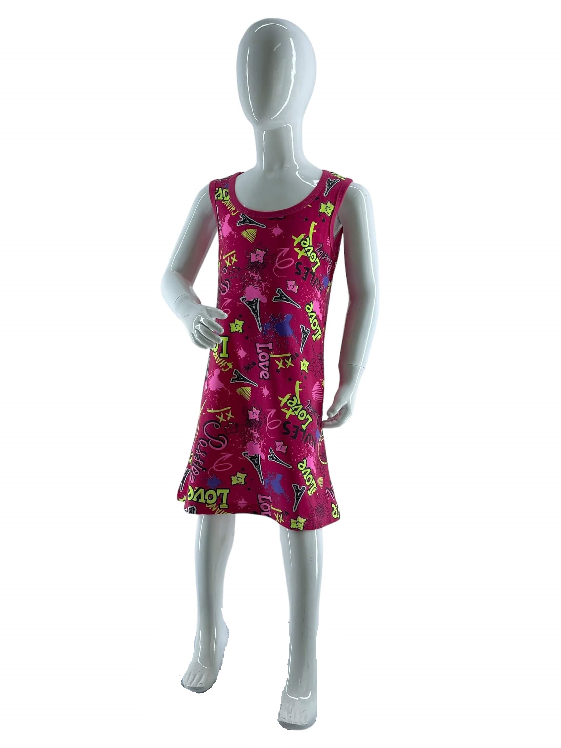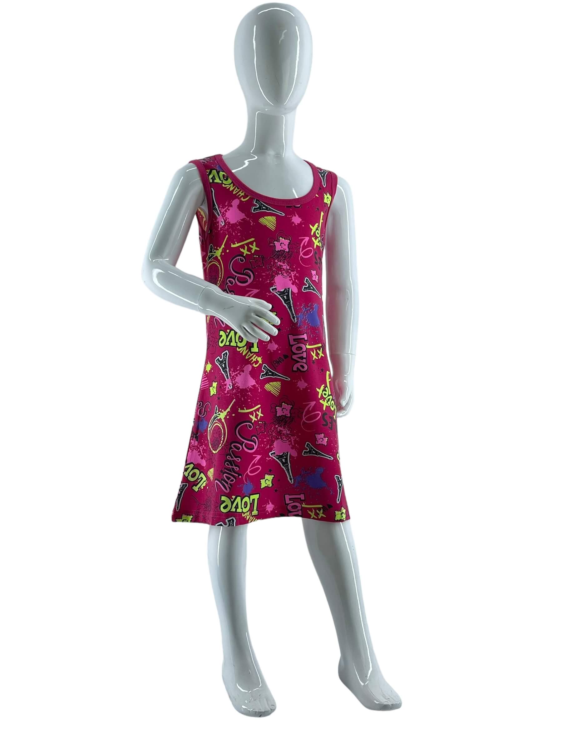 Φόρεμα κορίτσι μακό εμπριμέ λαιμόκοψη, αμάνικο σε άλφα γραμμή.