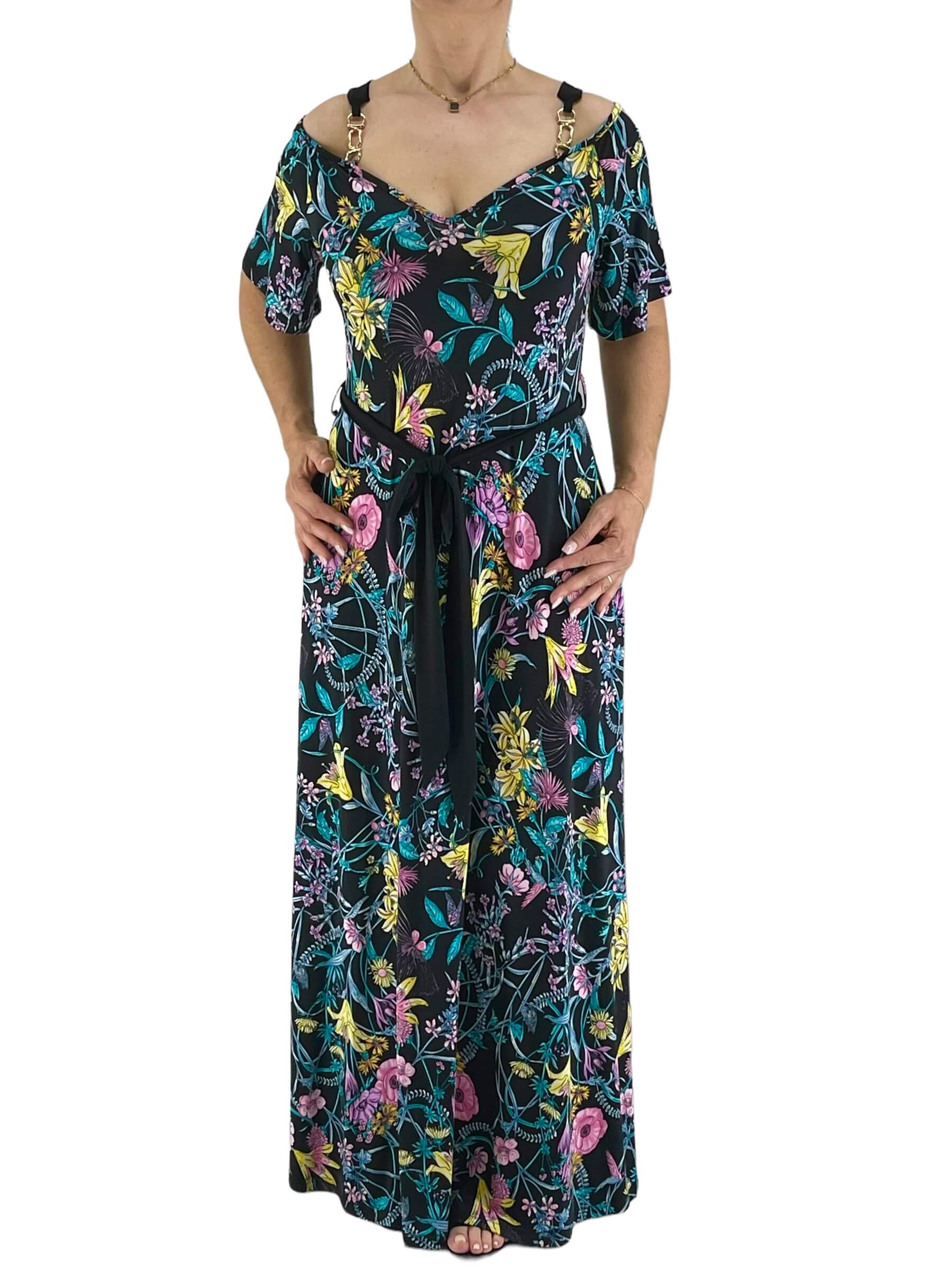 Φόρεμα εμπριμέ maxi με έξω ώμους και αλυσίδες κωδ.249425