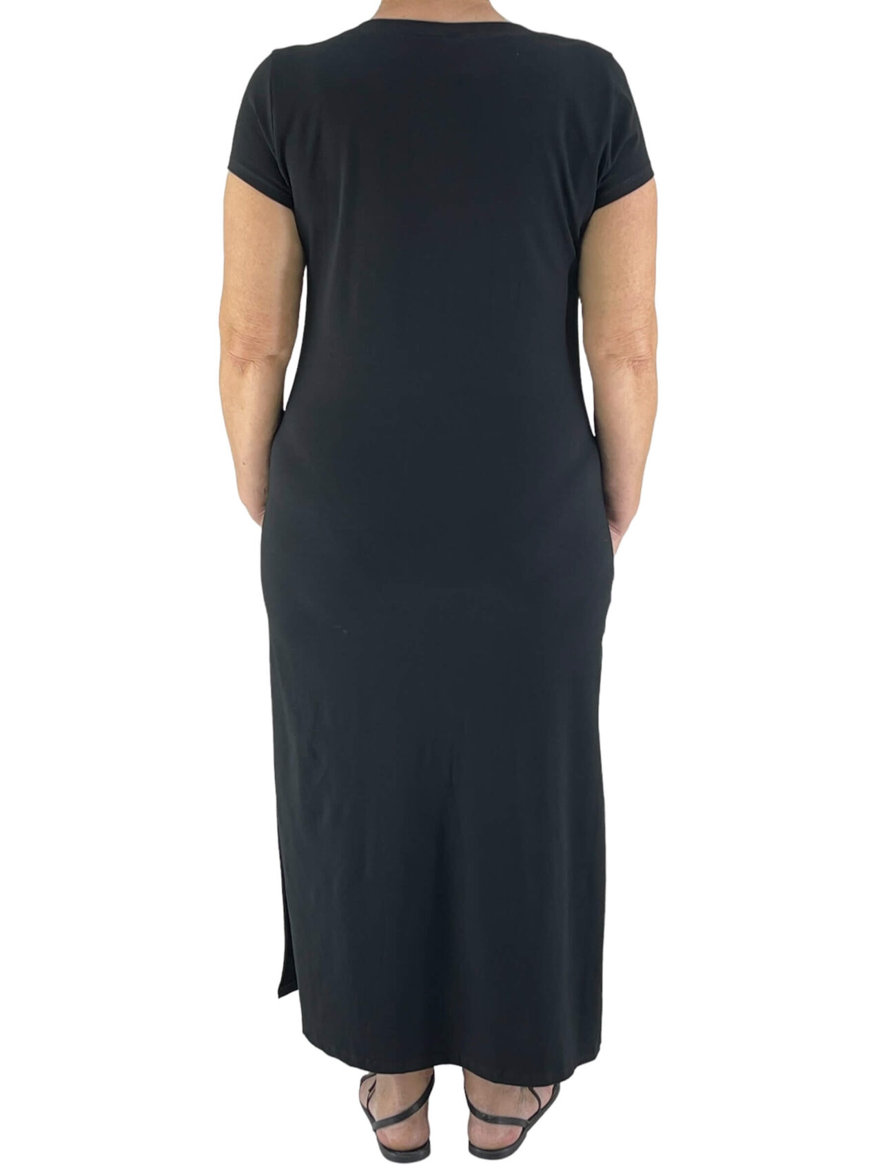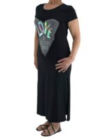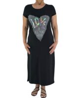Φόρεμα βαμβακερό,ελαστικό,λαιμόκοψη με στάμπα στο εμπρός μέρος.Ανοίγματα στα πλα’ι’ινά.Καλύπτει από νούμερα:S εώς L.