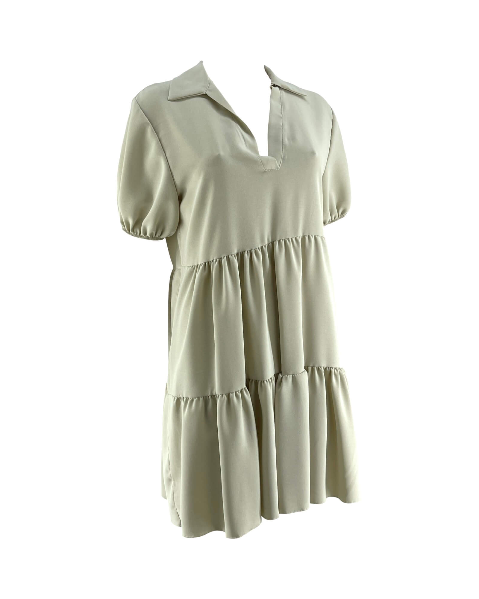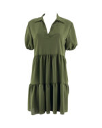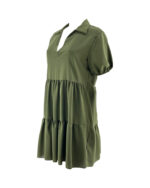 Φόρεμα γυναικείο μονόχρωμο,σταθερό ύφασμα με V και γιακά.Σούρες στο κάτω μέρος.Κοντό μανίκι με τελείωμα λάστιχο.Καλύπτει απο νούμερα: S εως L.