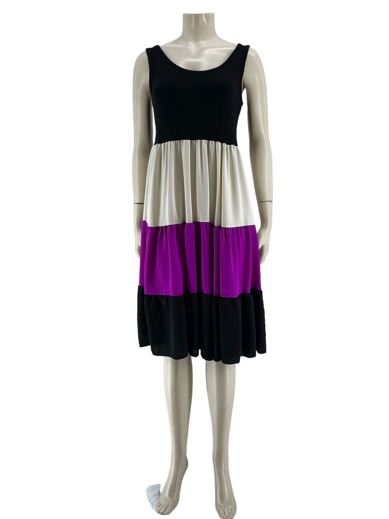 Φόρεμα γυναικείο ραντάκι βισκόζ ελαστικό στο μπούστο.Φάσες τρίχρωμες,ριχτό το κάτω μέρος.Ίσιο τελείωμα.Καλύπτει από νούμερα:M εώς 2XL.