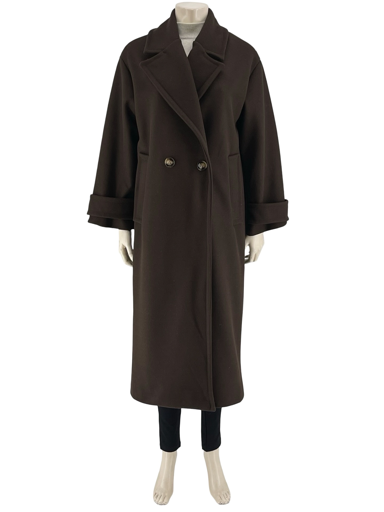 Παλτό μακρύ, μονόχρωμο, φοδραρισμένο στο εσωτερικό του.