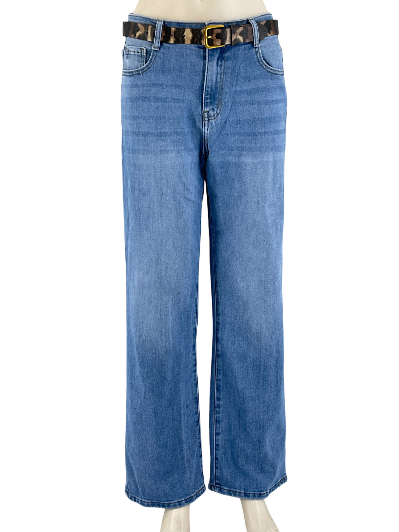 Παντελόνα τζιν ψηλόμεση με animal print ζώνη κωδ. H3102