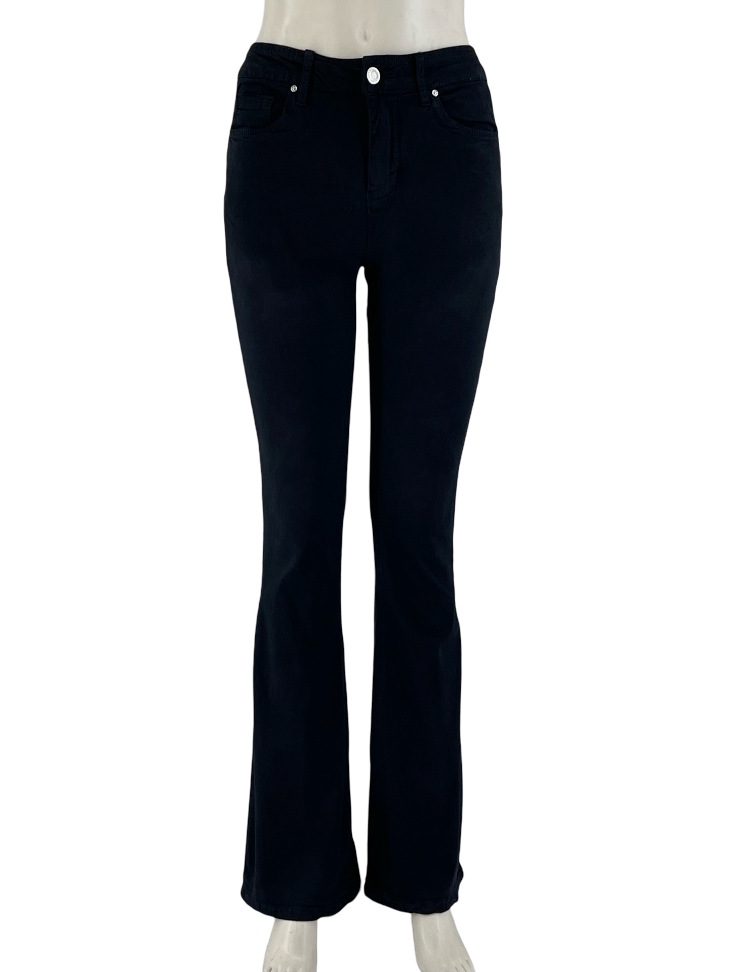 Γυναικείο παντελόνι push-up καμπάνα, καπαρντίνα ελαστική. Κλείσιμο με κουμπί και φερμουάρ. Κανονική γραμμή.