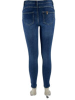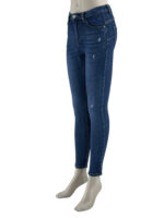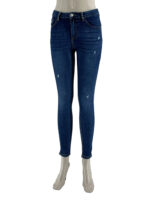 Παντελόνι τζίν skinny ελαστικό,πεντάτσεπο με φθορές στο εμπρός μέρος.Κλείσιμο με κουμπί και φερμουάρ.Στενή γραμμή.
