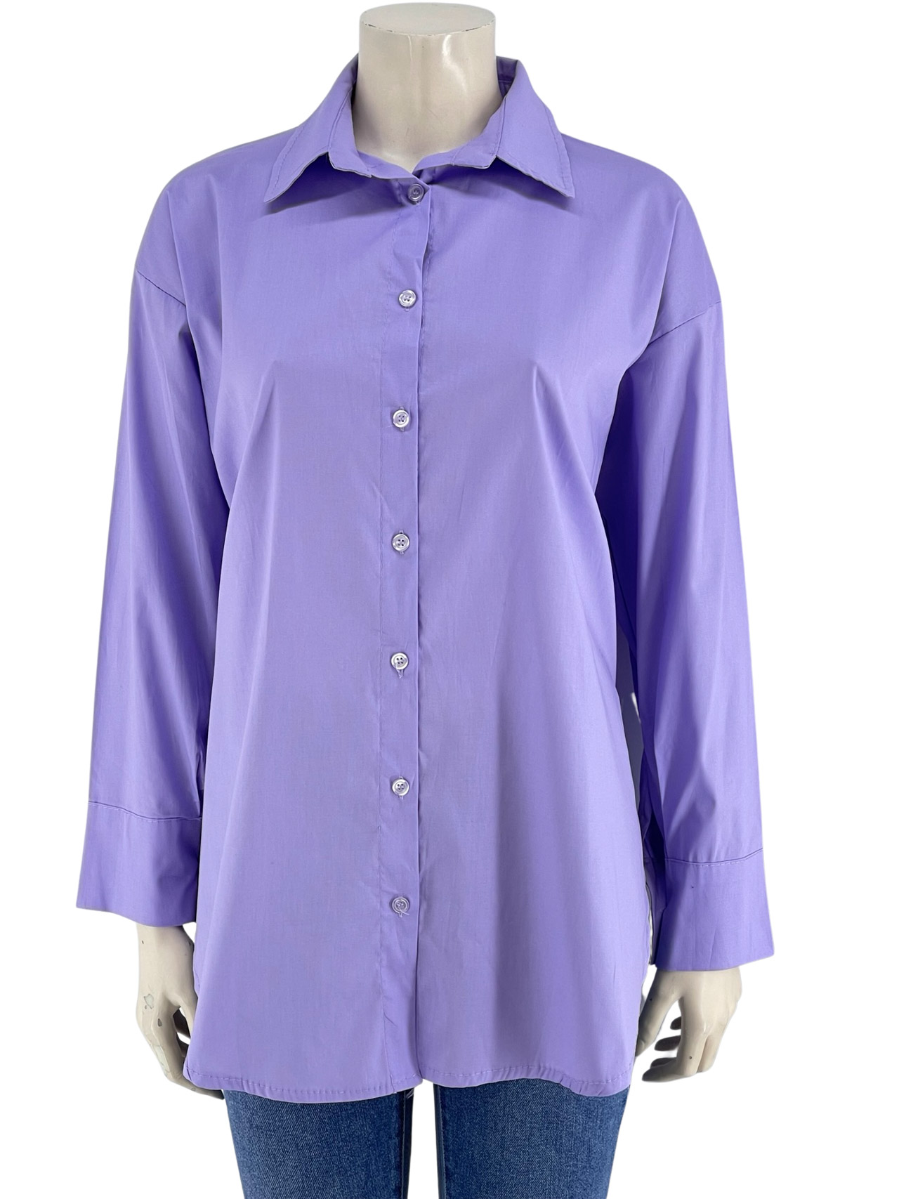 Πουκάμισο γυναικείο μονόχρωμο βαμβακερό, ελαστικό με πέτο γιακά. Κλείσιμο με κουμπιά . Στρογγυλό τελείωμα με ανοίγματα στα πλαϊνά. Μακρύ μανίκι. Καλύπτει από ΝοL έως Νο2XL.