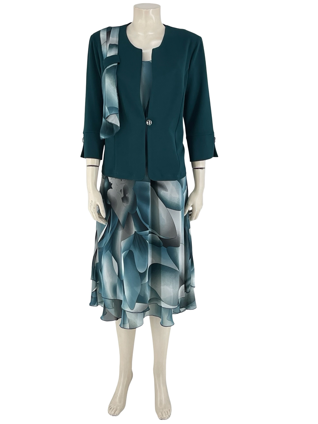 Σετ φόρεμα εμπριμέ με μονόχρωμο σακάκι κωδ. F843