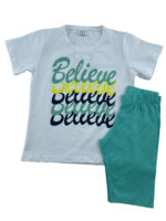 Σετ κορίτσι βαμβακερό,ελαστικό μπλουζοφόρεμα λαιμόκοψη.Κοντό μανίκι ίσιο τελείωμα.Κολάν μονόχρωμο με λάστιχο στην μέση.