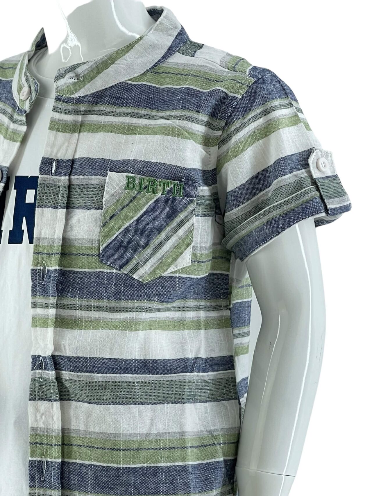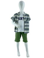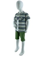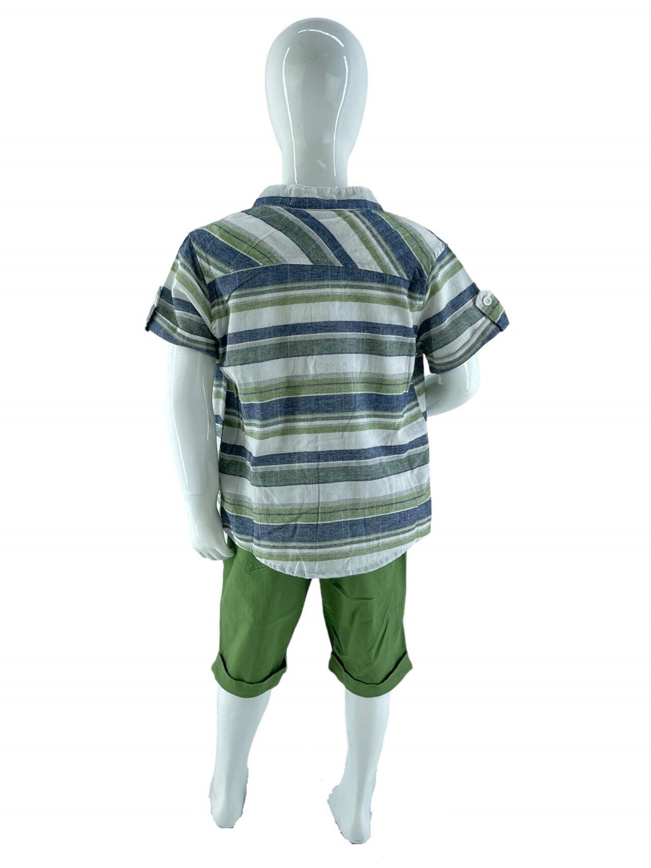 Σετ τριπλέτα αγόρι πουκάμισο ριγέ με mao γιακά και τσεπάκι στο εμπρός μέρος.Κλείσιμο με κουμπάκια.Κοντό μανίκι.Μπλουζάκι βαμβακερό αμάνικο με τύπωμα στο εμπρός μέρος.Βερμούδα καπαρτίνα με κοφτές τσέπες εμπρός.Κλείσιμο με κουμπί και φερμουάρ.Λάστιχο αυξωμείωσης.Ρεβέρ στο τελειωμά της.