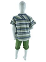Σετ τριπλέτα πουκάμισο ριγέ mao γιακά μπλουζάκι και βερμούδα καπαρτίνα κωδ.F1181