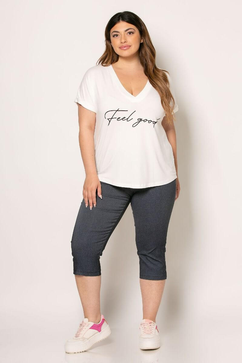 Μπλούζα V μονόχρωμη με τύπωμα κωδ.473018